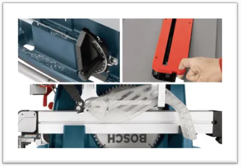 Obviamente, dado que se trata de una sierra de mesa, Bosch introdujo el mecanismo de seguridad esencialmente como un SOP. Fueron ligeramente un paso más allá al agregar un protector de cuchillo divisorio. Aunque la cuchilla divisoria se coloca detrás de la hoja de la sierra circular de mesa, no se sabe cuándo o cómo pueden ocurrir accidentes.