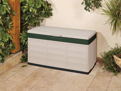 - Seguridad : El baúl consta también de un cierre para candado. Permite abrir y cerrar fácilmente el arcón. Así podrá guardar de forma segura sus accesorios de jardín.