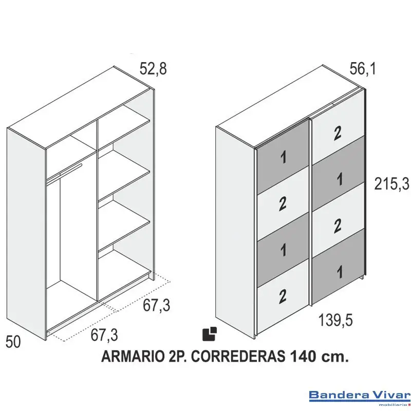 - Armario de dos puertas correderas de 120cm de ancho por 204cm de alto.