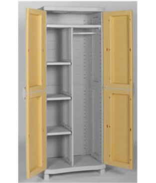- Características: armario de plástico con doble puerta y 1 estante interno ajustable en altura