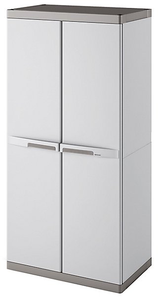 - Características: armario de resina con 2 puertas, estantería interna con 4 estantes fijos. Soporte máximo por estante de 10 kg distribuídos uniformemente