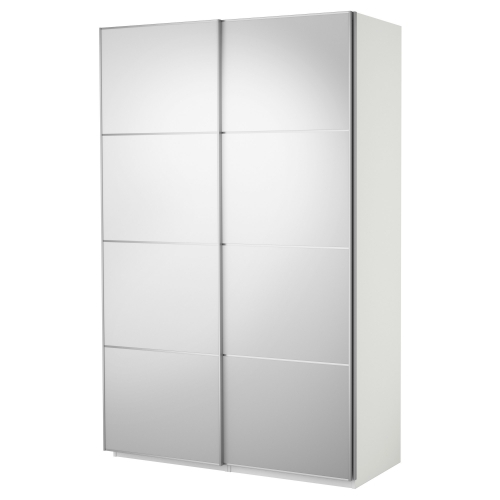 - Armario de dos puertas correderas de 120x200. En el interior tiene una barra horizontal que cruza la mitad del armario para colgar tu ropa, un estante superior para utilizar como altillo y tres estantes laterales para tener doblada la ropa.