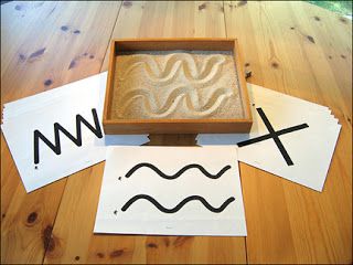 - La pizarra de arena guía a la prescripción y a la escritura de letras, palabras y números.