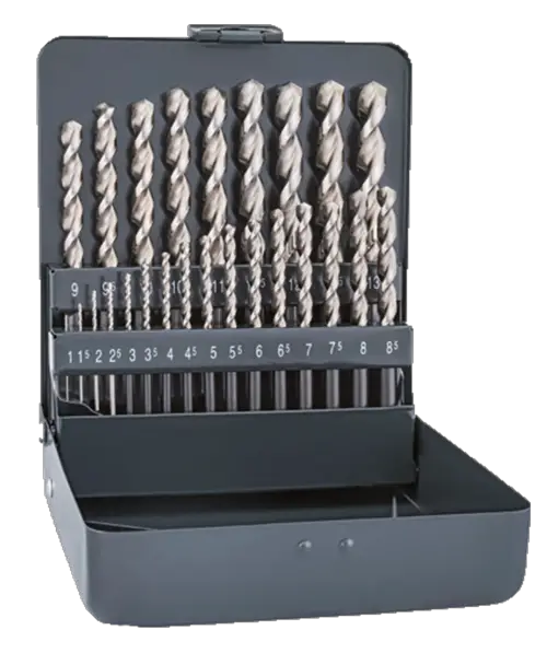 - Diecinueve brocas helicoidales de acero ultrarrápido para trabajos de taladrado en aplicaciones manuales y estacionarias