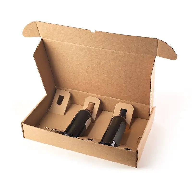 - Estuche horizontal de cartón diseñado para el embalaje de dos botellas de vino