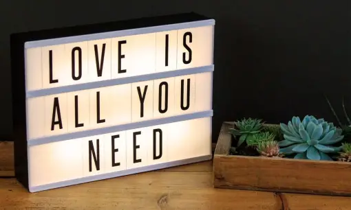 - Utiliza la caja de luz retro, por ejemplo, como lámpara de mesa en el salón o como decoración, para enviar un mensaje de felicitación a tu pareja.