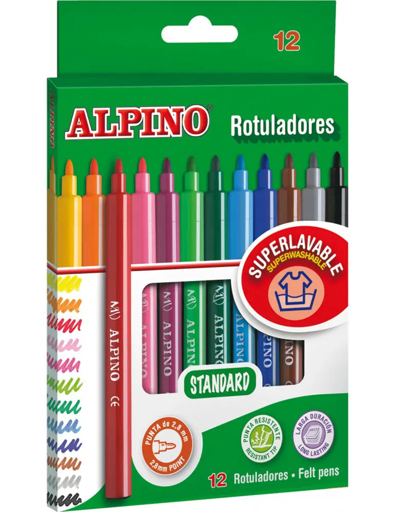 - Uso: caja de rotuladores para niños y adultos creativos. Tinta con fórmula super lavable, se lava fácilmente de la piel y de la mayoría de los tejidos con agua y sin jabón