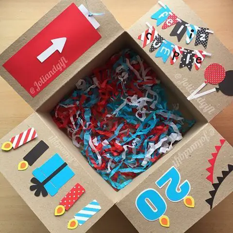- DIY Caja de Explosión: Exquisita forma de explosión creativa. Tan pronto como se abre, la caja de regalo explota, todos los lados caen hacia atrás para revelar una gran tarjeta de varias capas y mostrar todo el amor que se pone en ella. Cuando se cierra, la caja parece una caja de regalo.
