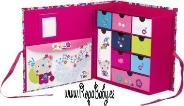 - Contiene: 1 diario de nacimiento de 40 páginas ilustradas, 1 árbol genealógico, 1 ranura para pegar el retrato del bebé, 3 bolsas de recuerdos, 5 cajones con tesoros