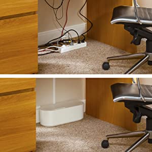 - 【Aumente la seguridad】 Junto con la tapa, la caja de cable ofrece protección contra salpicaduras y dificulta que los niños y las mascotas accedan a los cables y enchufes: seguridad adicional en su hogar