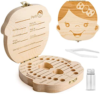 - [Material Natural] Hecho 100% de madera, no tóxico e inofensivo, resistente a la corrosión y duradero para el almacenamiento de dientes durante mucho tiempo. Protege y organiza los dientes del bebé.