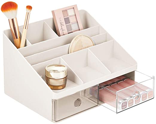 - DISEÑO 2EN1: El organizador consta de dos partes separadas, puede apilarlas o usarlas individualmente. Una solución elegante que ahorra espacio en el baño, el tocador o el escritorio. Cuenta con diferentes tamaños que se adaptan a cada accesorio.