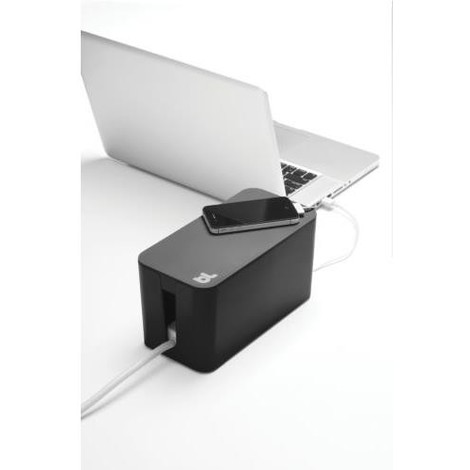 - 4. CREACIÓN DE ESPACIO: la tapa de nuestra caja de administración de cables también está disponible como una bandeja para almacenar teléfonos inteligentes u otros dispositivos pequeños.