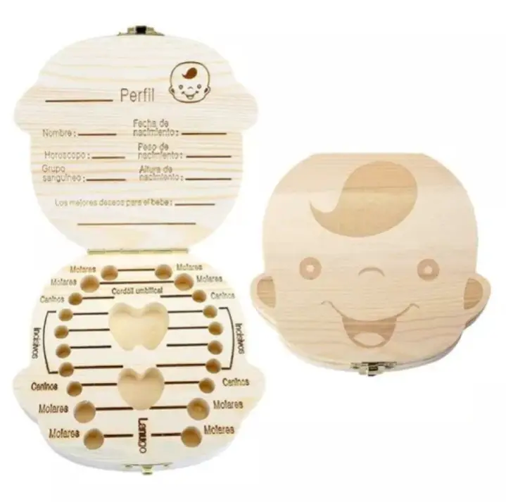 - [Material Natural] Hecho 100% de madera, no tóxico e inofensivo, resistente a la corrosión y duradero para el almacenamiento de dientes durante mucho tiempo. Protege y organiza los dientes del bebé.