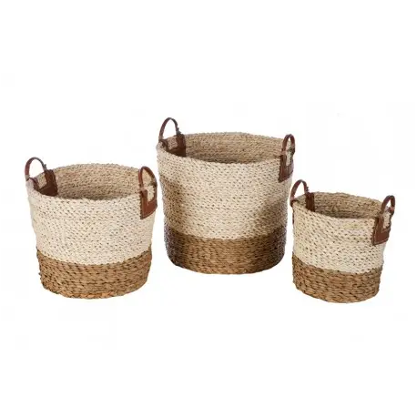 - 3 cestas decorativas de mimbre, diferentes tamaños, con asa