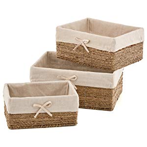- Las cestas de almacenamiento Decorasian de algas marinas están fabricadas de manera sostenible con materias primas renovables. Las cestas tienen los tamaños 35 x 24 x 9 cm o 32 x 21 x 7 cm.