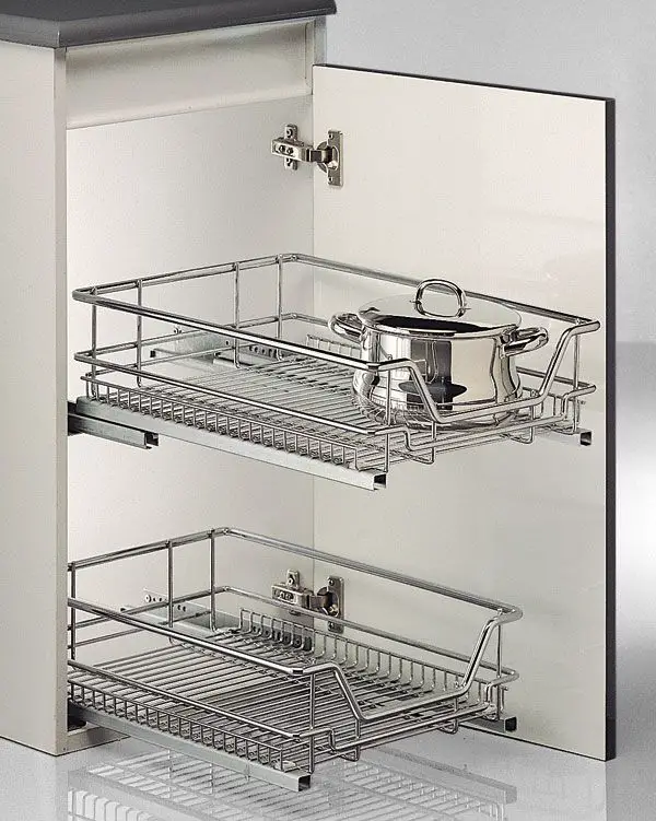• Organizador de cocina para armarios a partir de 15 cm de ancho, con 2 cestas, cromado