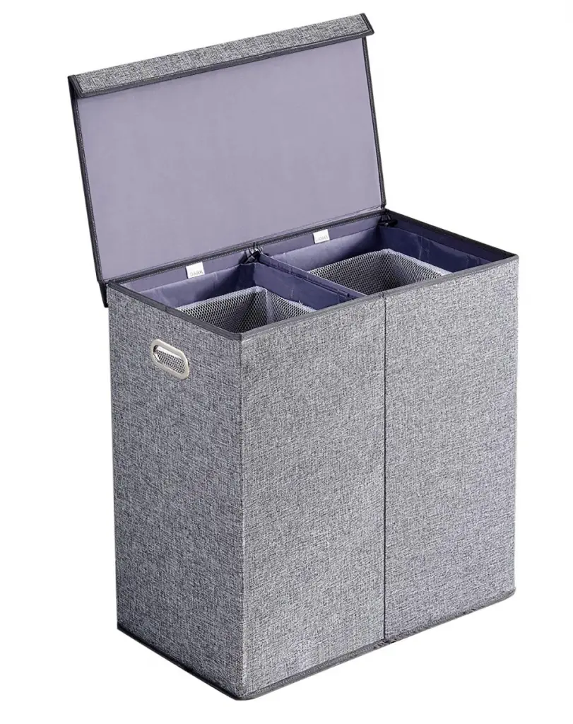 - Máxima funcionalidad: la cesta de bambú para la colada con 2 compartimentos con tapa hace la vida más fácil. La tapa protege contra el polvo y las miradas. Las bolsas de lavandería se pueden quitar por separado. Cesto plegable para la colada, color gris
