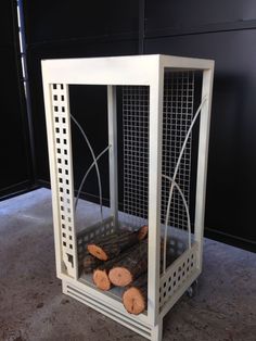 - Soporte para troncos de leña natural o briquetas de madera de diseño. 100% Acero. Fabricado en la Unión Europea (España)