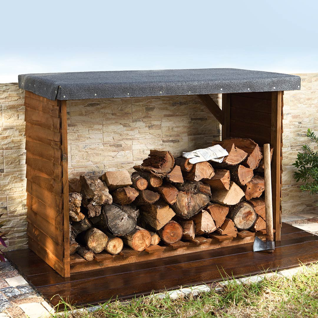 • Este cobertizo de almacenamiento de troncos presenta una excelente solución de almacenamiento para la leña