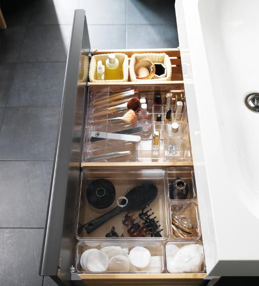 Herramientas que tienen que ver con organizadores con cajones de bano.