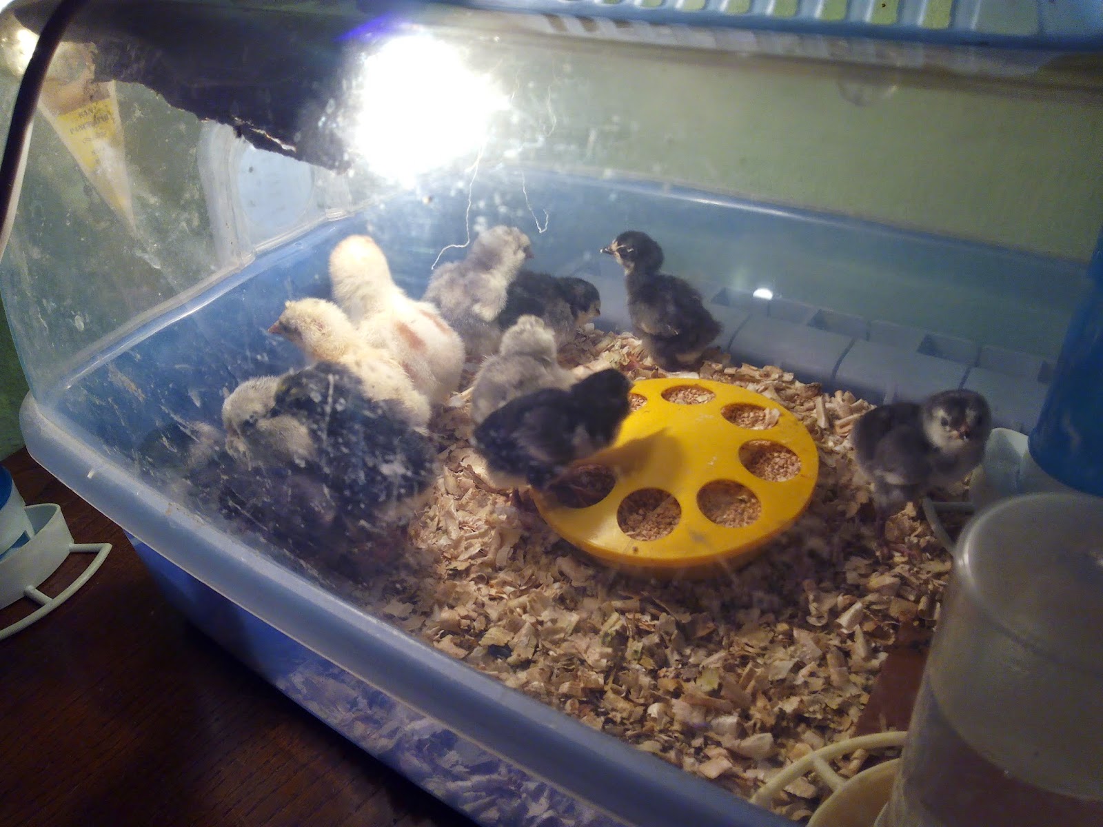 Cuando los pollitos nacen, se sugiere que se queden alrededor de 95ºF. Si los llevas adentro donde el aire acondicionado está funcionando, necesitarán una fuente de calor, no importa cuán caliente sea afuera.