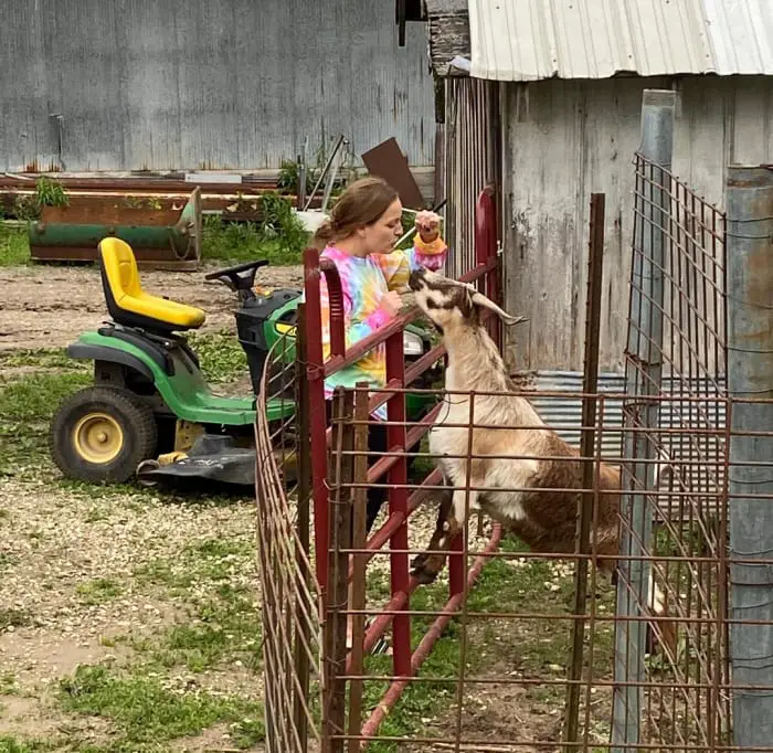 Algunas cabras se consideran ganado y se crían como fuente de carne. Y algunas cabras se crían como mascotas. Mi hija y su esposo consideran a sus cabras como mascotas , y yo los llamo perros al aire libre . Realmente son tan mansos, leales, inteligentes y cariñosos como los perros.