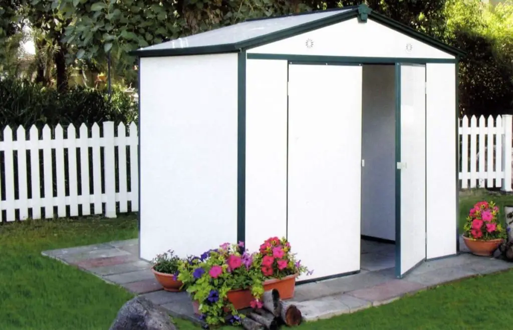 - PERFECTA COMO CASA DE VERANO. Gracias a la doble puerta y a las ventanas de plexiglás que dan mucha luz natural, hacen de esta cabaña de jardín una impresionante casa de jardín de verano. Tu parrilla y muebles de exterior y piscina pueden ser rápidamente accesibles para los calurosos días de verano.
