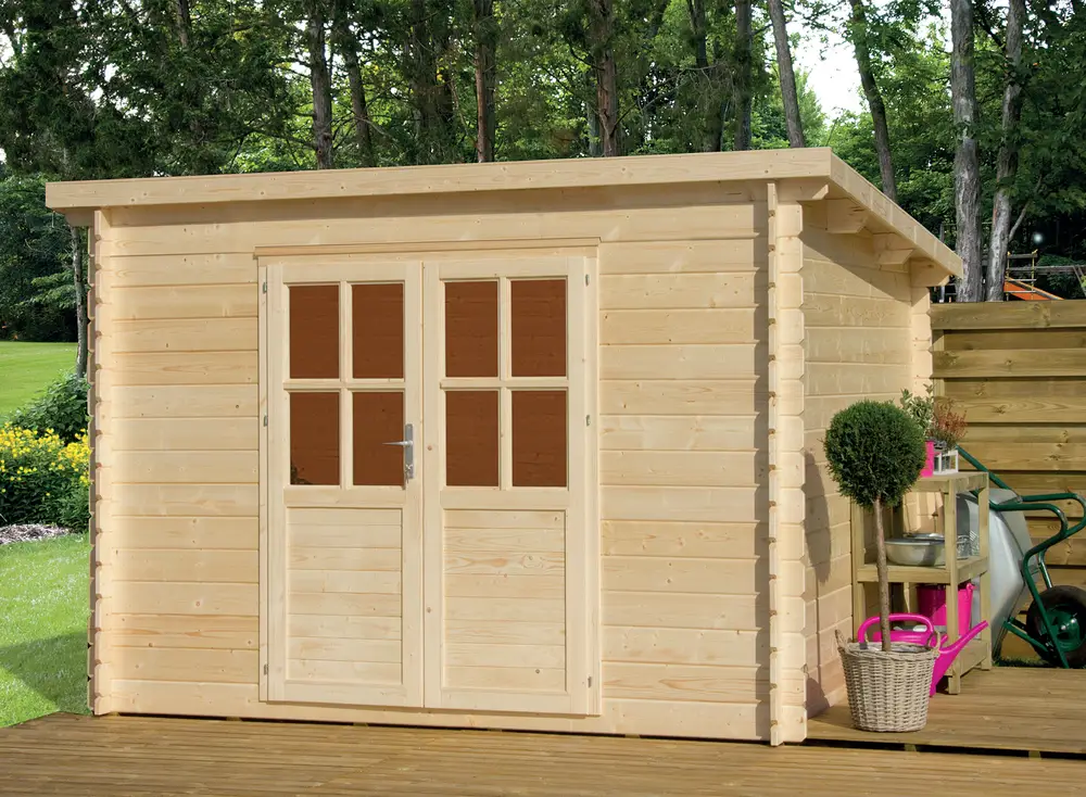 - Resistente a la intemperie: la madera cuenta con dos capas de pintura impermeable y, por lo tanto, tiene una gran resistencia a la intemperie. El techo de asfalto es resistente al agua.