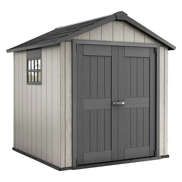 - Su elegante diseño de imitación madera le da a la Caseta Manor gran funcionalidad