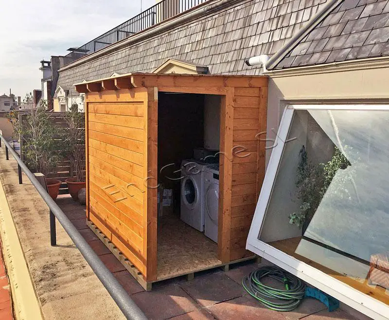 - Puede darle a la caseta la utilidad que desee: Un garaje para las bicicletas o trastos de los niños, el cuarto de la lavadora, un estudio, un almacén, o un pequeño taller de bricolaje.