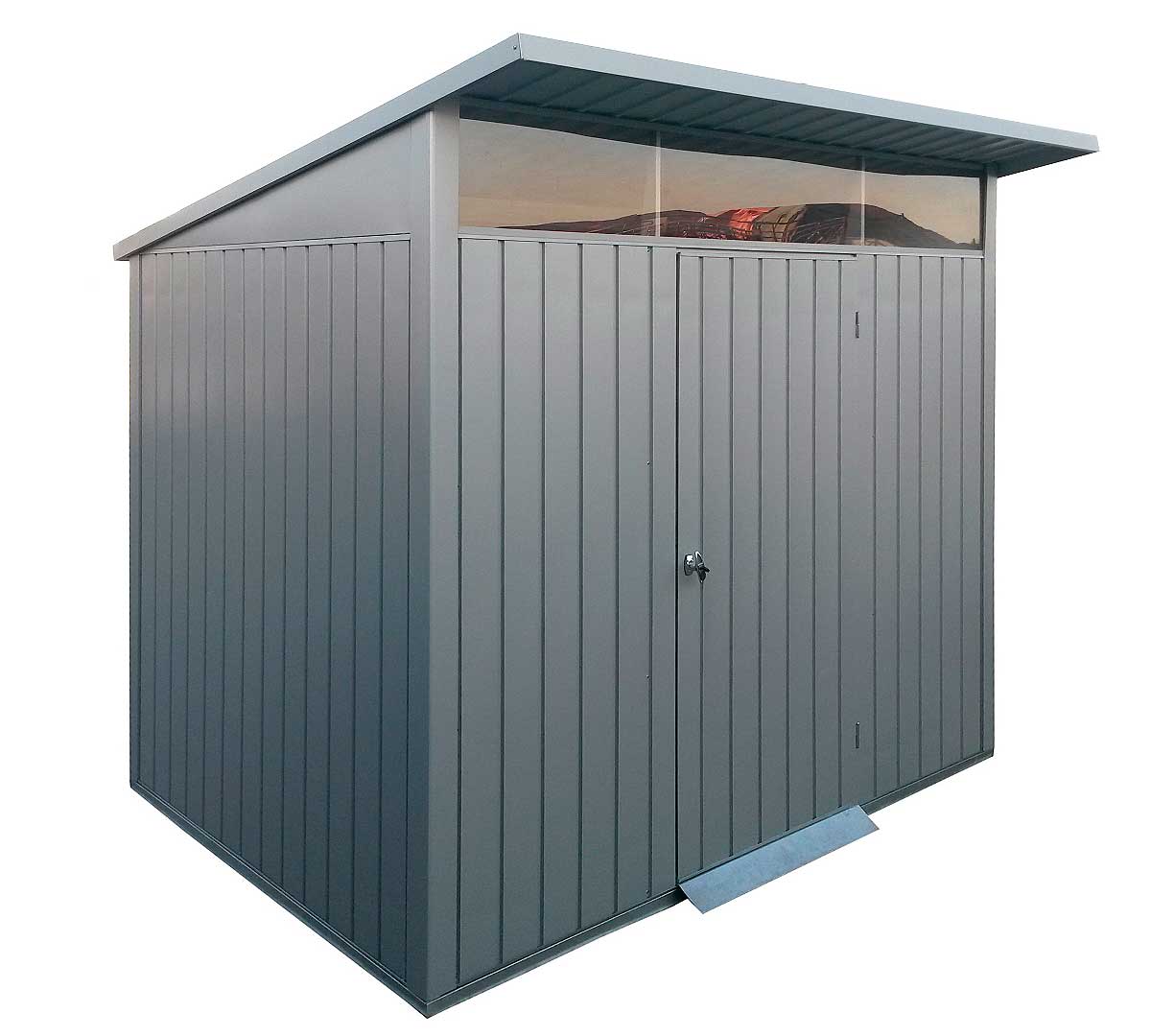 - Fabricada en acero galvanizado con un espesor de 0,4 mm en color gris antracita con unas medidas exteriores de 255x277x212 cm y un peso de 124 kg