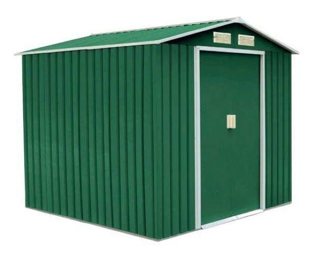 - Fabricada en acero galvanizado con un espesor de 0,25 mm en color verde y blanco con unas medidas exteriores de 241x321x205 cm y un peso de 88 kg