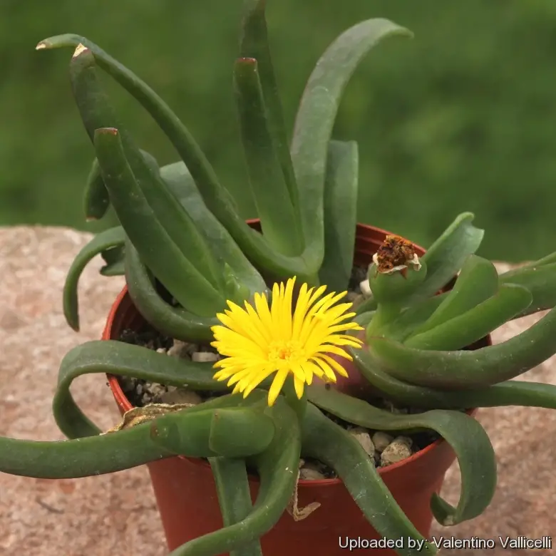Apténia cordata, Foicoide de hoja de corazón Botánica Nombre latino: Aptenia cordifolia Sinónimos: Litocarpus cordifolia, Mesembryanthemum cordifolia Familia: Aizoaceae Origen: Sudáfrica Época de floración: primavera a principios de otoño Color de la flor: -5°C, preferible en regiones de clima templado, en maceta o en otro lugar Exposición: