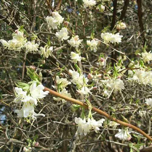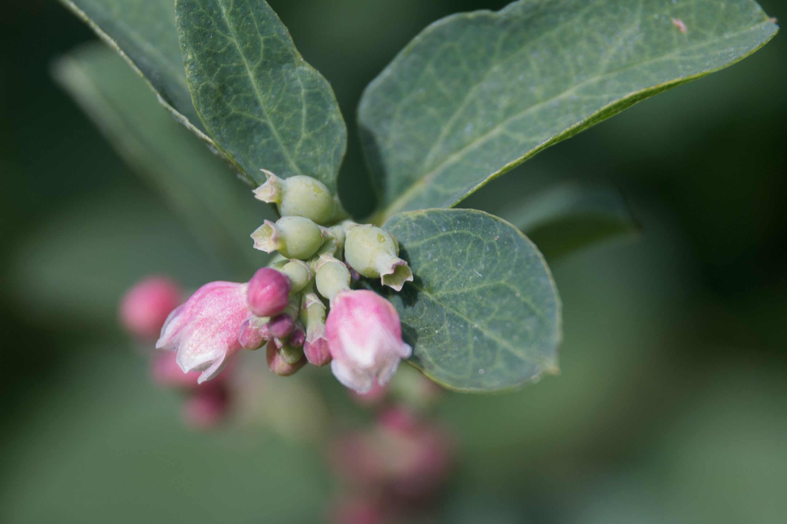 Serrano blanco, Serrano común, Árbol de la perla Botánica Nombre latino: Symphoricarpos albus Sinónimos: Symphoricarpos racemosus, Symphoricarpos rivularis Familia: Caprifoliaceae Origen: Norteamérica Periodo de floración: julio a septiembre Color de la flor: