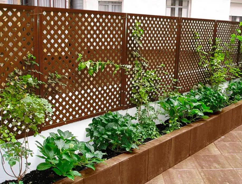 - JARDINERA CON CELOSÍA: Esta jardinera cuenta con una celosía en la parte posterior para que puedas cultivar enredaderas o colgar algunas macetas de flores decorativas, creando un bonito estilo rústico y natural