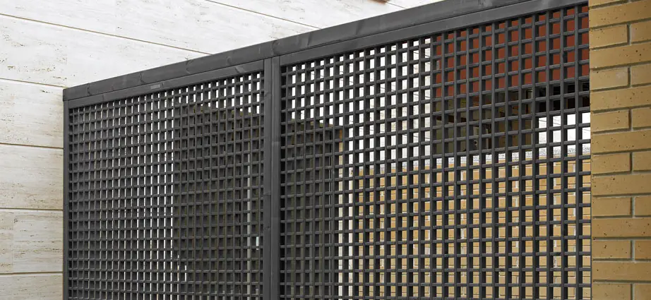 - Celosía extensible de PVC, para fijar en un muro y tutorar las plantas.