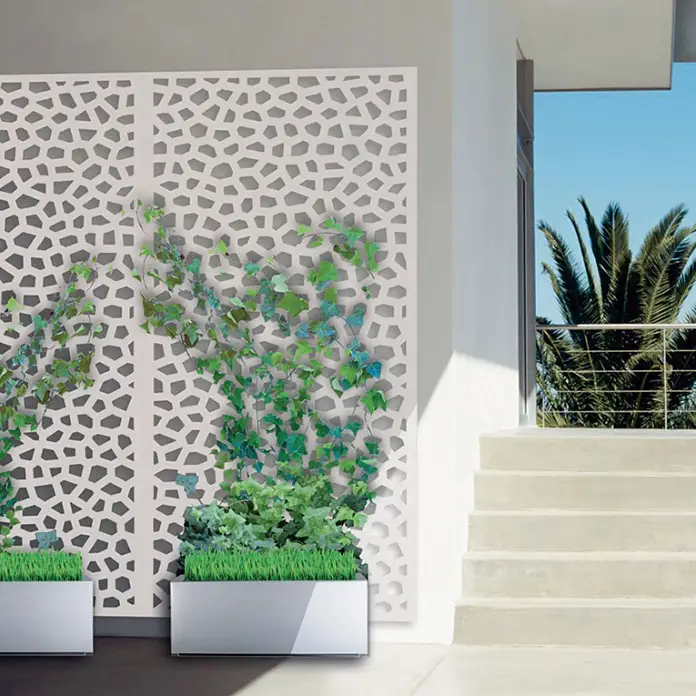 - Celosía extensible de PVC, para fijar en un muro y tutorar las plantas.
