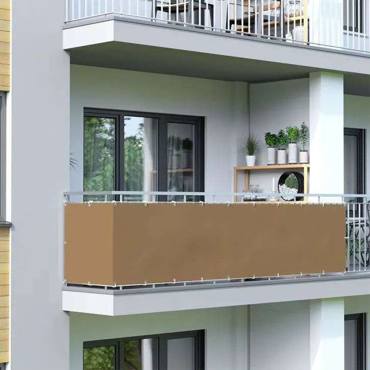 - REVESTIMIENTO DE BALCÓN DE MONTAJE SENCILLO CON OJALES DE METAL Y CUERDAS - Las pantallas tienen ojales cosidos para poder sujetarlas fuertemente. Además, una cuerda muy resistente de 10m está incluida en el volumen de envío (naturalmente también puede usar alambres o cables de sujección, no incluidos en el envío).
