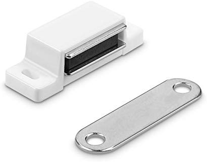 - Potente fuerza magnética: cada soporte alberga un único imán con una fuerza fuerte que mantiene la puerta del gabinete, el cajón, la puerta francesa o la puerta de la despensa bien cerrada. Bueno para usar en la puerta en la que el pestillo o la bisagra no sirven. También es perfecto para evitar que su mascota entre en su armario por diversión.