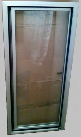 - Puerta Balconera Aluminio Practicable con apertura a Izquierda, 80cm Ancho × 200cm Alto con rejilla de ventilación inferior y 1 hoja de cristal mate carglass. Manivela en el interior de la vivienda