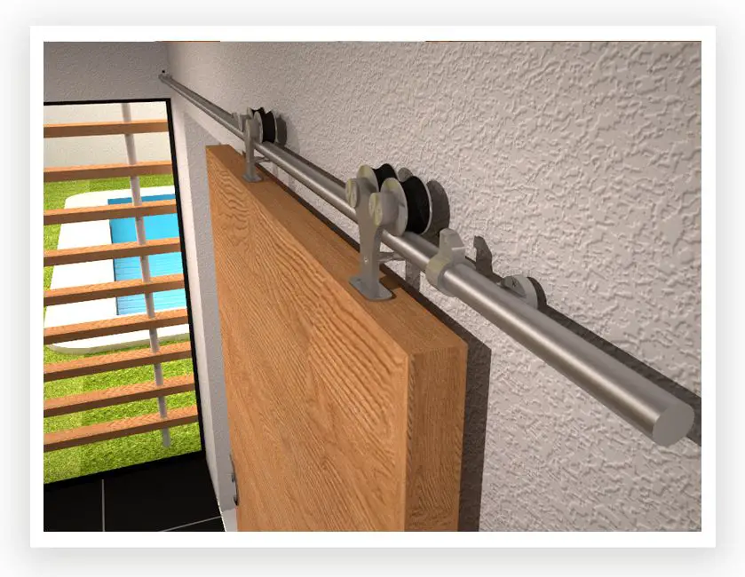 - TRANSFORMA LAS PUERTAS: Permite que una sola puerta de madera se deslice a lo largo de la pared. Ahorra espacio para tu hogar, y debe usarse en las paredes de cemento macizas y no es adecuado para las huecas.