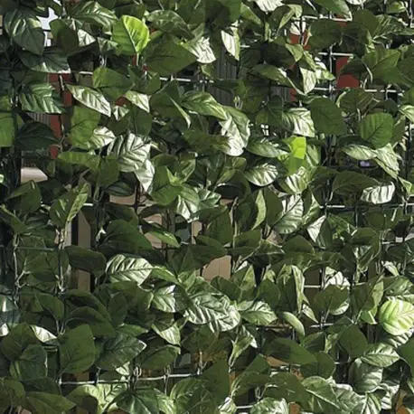 - El seto está hecho de PVC resistente a la luz estabilizada. Seto de hiedra artificial, tejido en rejilla de plástico.