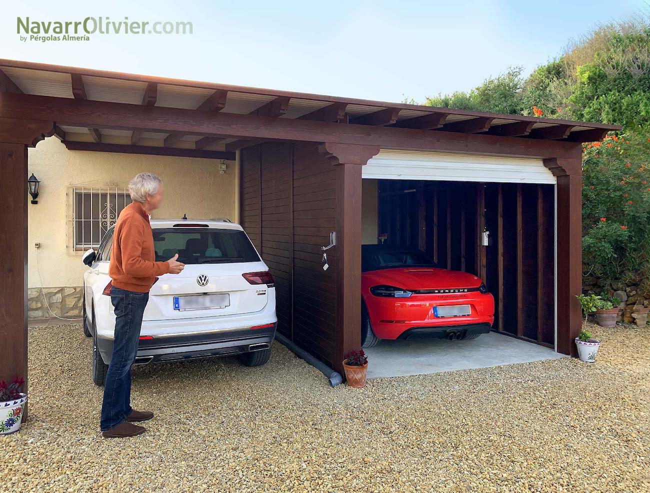 - Su estructura permite variar el uso principal de esta cochera de madera, úselo como cobertizo, cenador de jardín o zona de relax en su piscina. Al ser un producto de madera natural, puede presentar manchas azules en alguna zona al estar tratadas. Al no tener una cubierta, podrá elegir la cubierta que más le convenga: policarbonato, hierro corrugado, tejas o incluso PVC.