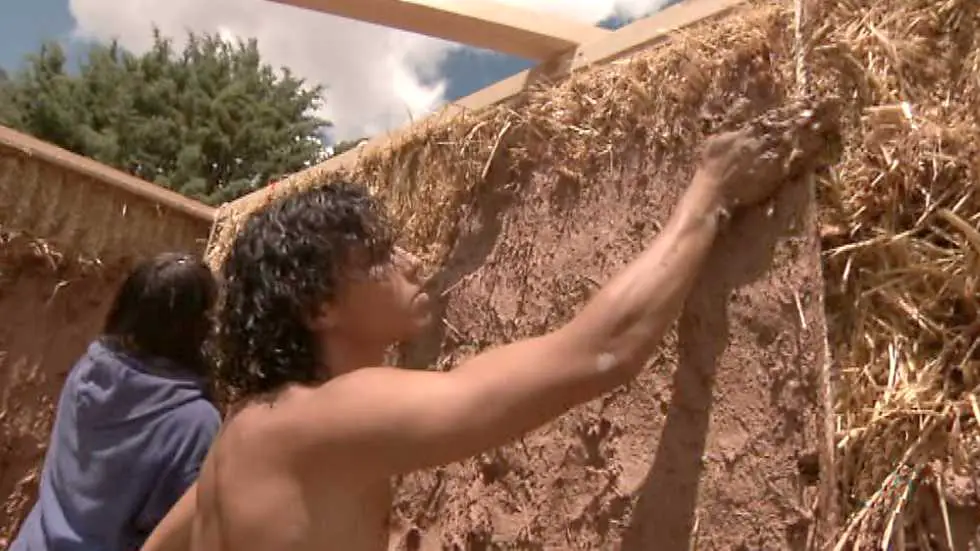 Está construido con madera cruda, ramas y bambú. Una vez que el