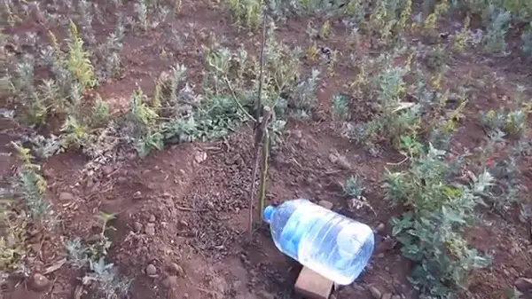 6. El sistema de irrigación de botellas plásticas y cuerdas
