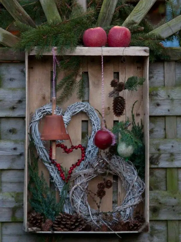 Los jarrones colgantes son siempre una gran idea, especialmente en Navidad, cuando podemos variar los colores y el brillo. Si tienes un jarrón colgante vacío en el jardín, corre y llénalo con las bolas de árbol que sobran, piñas, acebo y algo de luz. Si ya tienes todos estos objetos en casa, este proyecto se vuelve 100% barato, incluyendo el jarrón, porque para este tipo de solución también puedes crearlo, de forma completamente artesanal, ¡incluso usando sólo el alambre!