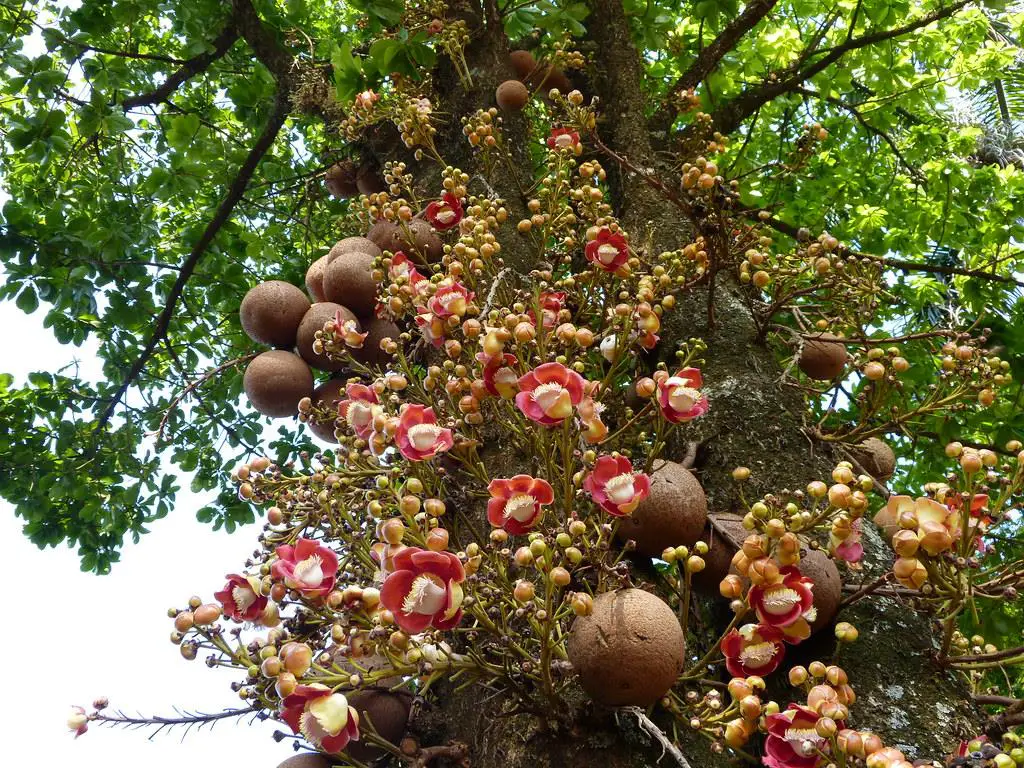 También conocido como bala de cañón. Sus frutos son grandes, pesados y malolientes, pueden provocar accidentes y mucha suciedad.