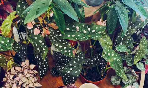 Begonia maculata, una especie muy ornamental caracterizada por hojas de color verde intenso con pequeñas bolas blancas en su superficie.
