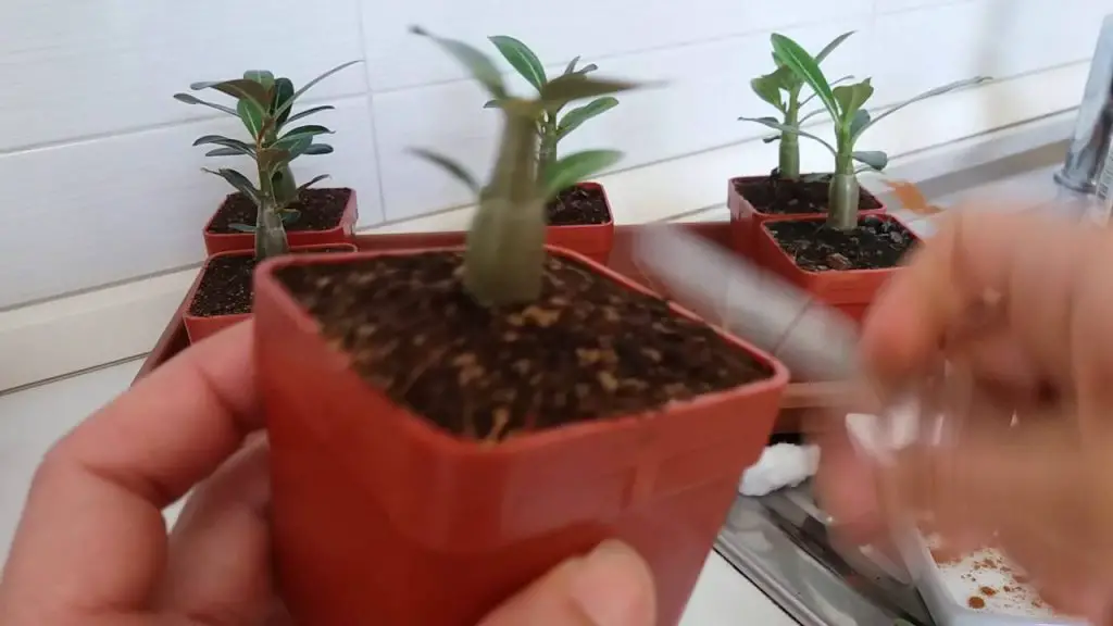 Todas estas fertilizaciones deben ir seguidas siempre de riego. Pero tenga en cuenta que las rosas del desierto no soportan demasiada agua. Realice estas fertilizaciones sugeridas cuando el sustrato esté seco, y después de las fertilizaciones, regando sin excesos.
